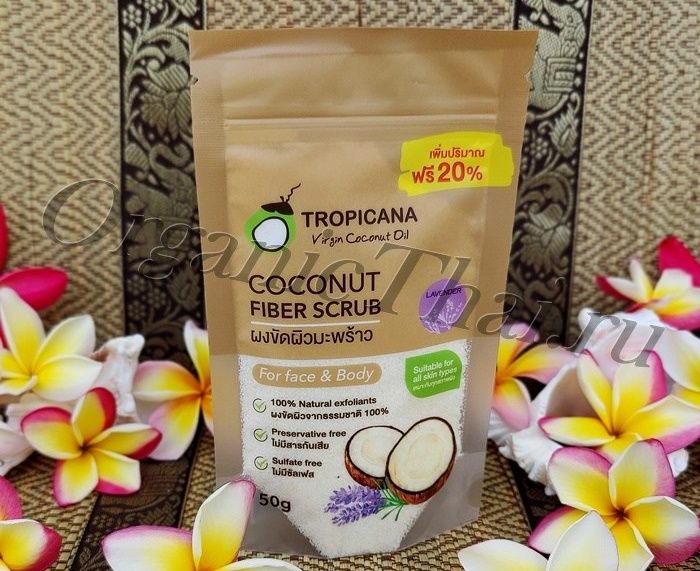Нежный, полностью натуральный скраб Тропикана из кокосовой стружки с маслом Лаванды также используется при лечении пятен постакне, растяжек и рубцов, устраняет зуд и мелкие кожные высыпания.