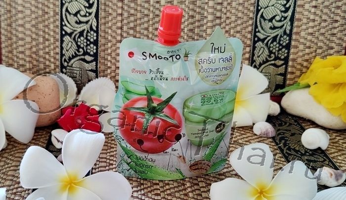 Тайский гелевый скраб-желе с алое, томатом и улиточной слизью Smooto tomato aloe snail jelly scrub.