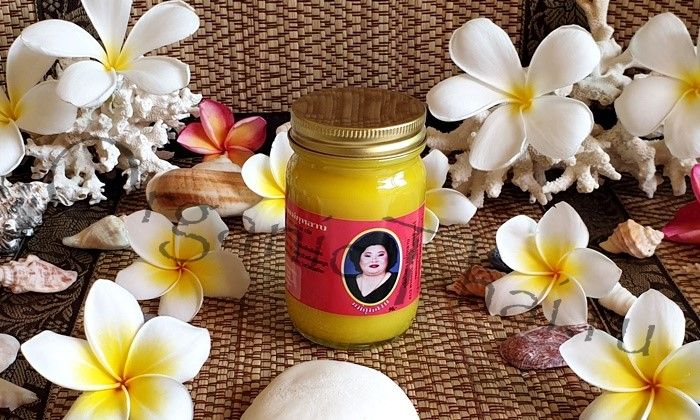 Жёлтая тайская мазь применяется для растирания при суставной, мышечной боли, для лучшего сращивания костей, вызывает интенсивный приток крови.