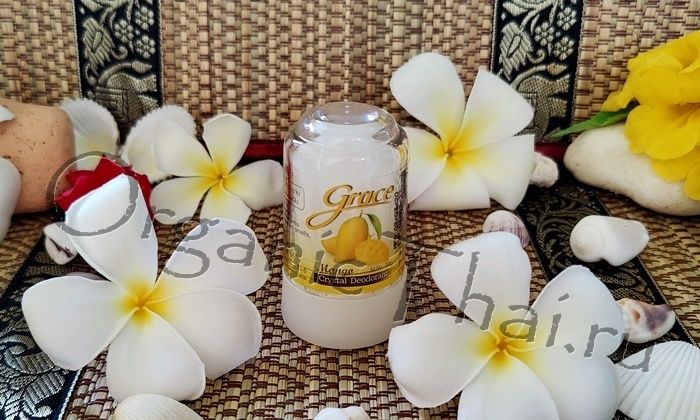Тайский дезодорант-кристалл Grace с ароматом Манго. Натуральный природный продукт для защиты от запаха и потоотделения. Дезодорант не содержит химические отдушки.