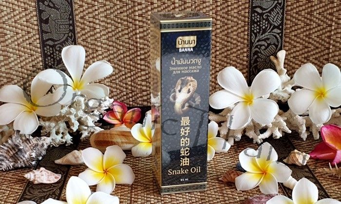 Змеиный бальзам (масло) для массажа BANNA SNAKE OIL, содержащее в составе не только змеиный жир, но и масло куркумы, кокосовое масло и масло камфорного дерева, для эффективного снятия боли в мышцах и суставах, для лечебного массажа от тайского производителя бренда Banna.